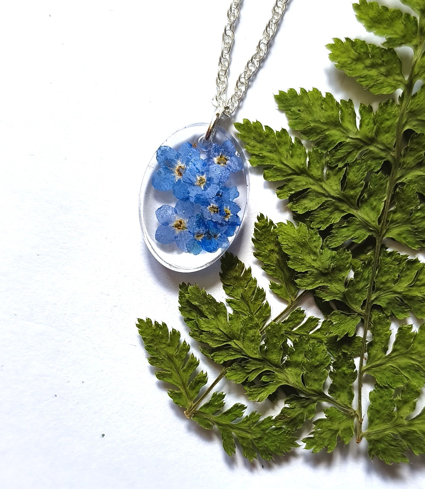 Pomněnka lesní. Sbírané kvítky po kvítku, lisované, vkládání do formičky pinzetou.